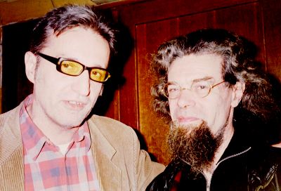 Mipi (met afgeschoren baard) en Godfried-Willem Raes