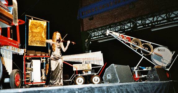 Moniek Darge met haar elektische viool en het <M&M> robotorkest