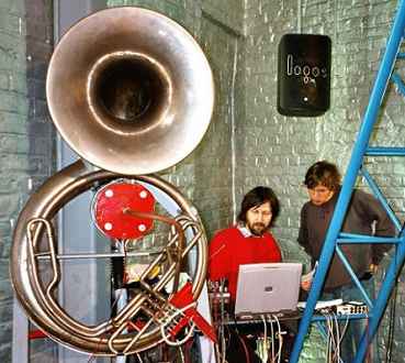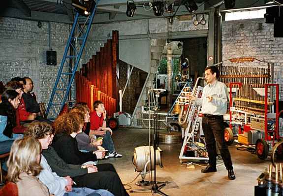 Godfried-Willem Raes bespeelt het <M&M> robotorkest met het <Invisible Instrument>