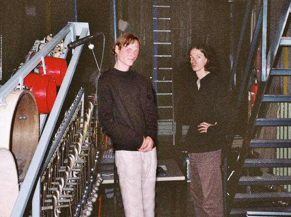 Maandag 30 mei. Na een rit van 900 km komen Kristof Lauwers en Bert Vandekerckhove goed en wel aan in München. Eenmaal aan de "Reaktorhalle", omgetoverd tot koncertzaal, ontdekken we dat de automaten een kleine drie meter de lucht in moeten. Een reaktorhal heeft nu eenmaal geen brede toegangspoorten en zeker niet op het gelijkvloers. <Ake>, de kleinste telg van het robotorkest, drie meter hoog krijgen, is niet het moeilijkste, maar de andere automaten zo hoog tillen, leek ons onmogelijk. Het technisch team in München had duidelijk ervaring met het verhuizen van zware objekten. Met een elektrische heftruk en veel voorzichtigheid zijn we er met vijf man in geslaagd alles naar boven te krijgen.