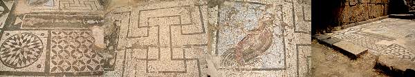 Van die tempel blijkt de vloermozaďek nog behoorlijk bewaard. Het geeft een zeer vreemde indruk hier zomaar over een Griekse antikwiteit te kunnen lopen, - wat we vanzelfsprekend niet doen- zonder de minste vorm van afsluiting of bescherming. Precies alsof hier nooit een mens komt. Op de vloer ontwaar ik de kontoeren van een lastdier, vast een ezeltje en een nog goed herkenbare vogel.
