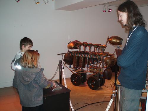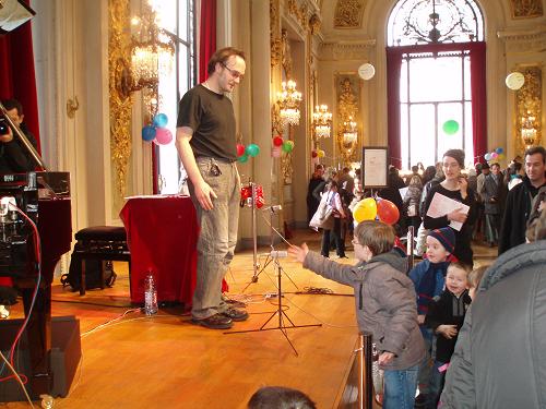 De volgende dag sta ik tegen twaalf uur in de opera om het begin van dit reisverslag uit te tikken op de laptop. Nadat de crewleden op het appèl de laatste schematische pijnpunten hebben doorgenomen, zetten ze om klokslag twee uur de poorten open en komt de meute binnen. Het wordt het startschot van een lange, maar bij nader inzien niet eens zo vermoeiende namiddag mensen infotainen. Niet de kids slorpen dit keer de meeste energie op, wel hetzelfde uitlegje dat ik keer op keer aan de bezoekers mag opdreunen en zoals gezegd, dat frans van mij...De reakties zijn ook dit keer positief zonder meer en ook de ouders laten zich met plezier verleiden tot het bespelen van