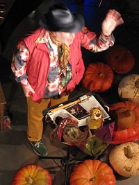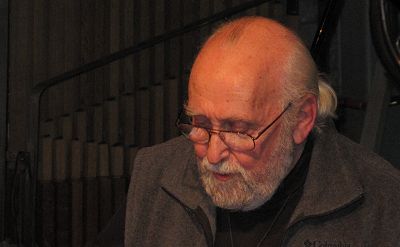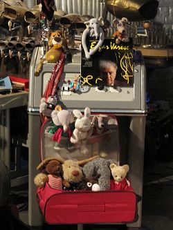 Op 5 November jl. mochten we maar liefst twee ikonen in het performance - genre verwelkomen: de dichter - antologist Jerome Rothenberg en de minimalistische pianist Charlemagne Palestine, allebei raszuivere New Yorkers en gezegend met een goedgevuld en allerminst onbesproken verleden. Onze zaal was er in zekere zin voor klaargestoomd, met een podium dat werd afgezet door negen massieve pompoenen - Halloween echode enigzins na. De gebruikelijke rekwisieten (knuffels, poppen en cognacglazen) waren ook voorhanden en flankeerden voor de gelegenheid onze eigen Philips Pavillion-recorder die ooit nog dienst deed op Expo 1958. Een grammofoonplaat met de beeltenis van een andere ikoon, Edgard Varèse, bekroonde het geheel. Uiteraard hield een programmatitel als Spinnigans Wake in Fanish onze verwachtingen hooggespannen.