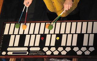 Zo kwamen we te weten dat de door Don Buchla ontworpen en in 30 à 40 eksemplaren geproduceerde Marimba Lumina bestaat uit 1) een midigestuurde interface en 2) een ingebouwde synthesizer. Die is op zich verbonden met een laptop die voorziet in een library van samples die met een tik op de Marimba Lumina kunnen getriggerd worden. De 'staven' van het instrument (in dit geval dus tot twee dimensies gereduseerde staven) fungeren als 'touchpads' die met de stokken bediend worden. Elke stok bevat een magnetiseerbaar spoeltje om de overeenkomstige staaf mee te aktiveren. Door het magnetisch veld hoeft de staaf niet eens aangeraakt te worden: het instrument is gevoelig en gesofistikeerd genoeg en kan voorgeprogrammeerd worden om stoksnelheid, slagrichting en -kracht te herkennen. Ook de stemming kan vooraf ingesteld en als een preset opgeslagen worden. Voor wie het koncert van op het balkon volgde, was Ligeti's werkwijze des te overzichtelijker: snelheid of dynamiek, het valt allemaal te regelen met een simpele stokstreek.