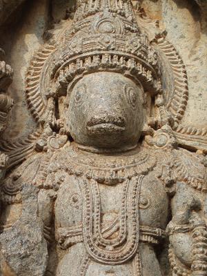 Vishnu is de beschermer van de kosmos en zo ook de helper van de mensheid. Eén van zijn attributen is de schelp. Hij kent vele gedaanten: hij kan allerlei half antropomorfe, half zoömorfe vormen aannemen, zoals bv. een mens met een vissenkop, maar vaak zien we hem ook gewoon als mens. Soms rust hij op een veelkoppige slang, die dienst doet als bed. Andere vormen van hem zijn Rama en Krishna. Rama is de held uit het Ramayana epos. Zijn gemalin, Sita, wordt geschaakt door de demon, Rawana en samen met het apenleger en hun aanvoerder, de witte aap, Hanuman, zal hij zijn vrouw bevrijden. Krishna speelt dan weer een belangrijke rol in de Bagavat Gita, één van de vele onderdelen van de Mahabaratha.