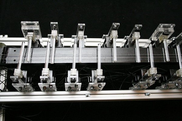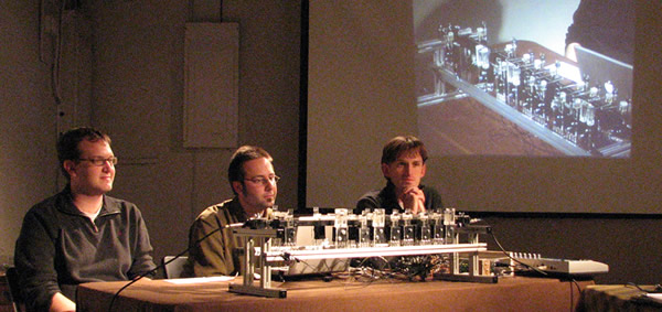 Een kleine twee jaar terug in de tijd kregen we bij Logos een stagiair over de vloer: Troy Rogers (US), komponist-programmeur en ontwerper van muziekinstrumenten. Troy studeerde bij Scott L. Miller aan St. Cloud State University in Minnesota en later vervolmaakte hij zich aan de University of Oregon bij Jeffrey Stolet en David Crumb, bij wie hij het Intermedia Music Technology Program volgde. Nadien volgde bij aan de Simon Fraser University's Sonic Research Studio kursussen in acoustic ecology en soundscaping bij Barry Truax. Troy's betrokkenheid bij het maken van robots begon met 'PercusBot', een automaat die trommels en klokken aanslaat en die hij ontwierp als een onderdeel van zijn afstudeerprojekt.