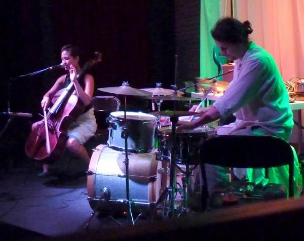 De term 'Kamama' komt uit het Tsalagi (een Irokese taal die gesproken wordt door de Cherokee indianen) en verwijst zowel naar het begrip 'olifant' als naar 'vlinder'. Er is geen inhoudelijk overlappende betekenis, alleen een vormelijke: een langwerpig voorwerp dat wordt geflankeerd door 2 loshangende, symmetrische flappen. (let your dirty thoughts wander). Twee kanten die door een gemeenschappelijke drive worden verbonden dus, of in ons geval: celliste/stemkunstenaar Audrey Chen (bij ons bekend van haar optreden met Abattoir in maart vorig jaar) en slagwerker Luca Marini gaan met hun respektievelijke instrumenten een dialoog aan die wordt verbonden en gemanipuleerd door live electronics.