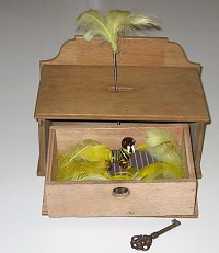 De zelfgebouwde muziekdozen van Moniek Darge zijn in feite echte geluidsdozen. Een oude lege doos die tot de verbeelding spreekt, wordt op zolder omgetoverd tot een visuele miniatuurwereld, die al gauw beroep doet op een geluid of muziekje. Dit kan het piepen zijn van een speelgoeddier of het krassen van een naald, maar evengoed een ouderwets muziekdoostrommeltje met een melodie vol heimwee naar lang vervlogen tijden.