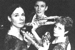In de tweede plaats is er de partituur voor de drie fluiten, die ook gebouwd is op het idee van de spiegel. Op een basistoon die een horizontale spiegel voorstelt, schikken zich, onder en boven, melodische accidenten, waaruit beelden en hun reflekties ontstaan. De tijd van het stuk kan ook als een vervormende spiegel gezien worden, het einde is de herkenning van het begin, maar een beetje alsof de spiegel door de hitte van het drama beslagen raakte.