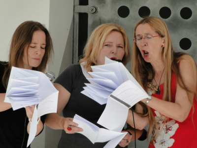 The Logos Women are a flexible group of composers, performers, singers and musicians linked to the Logos Foundation. Using soundscapes (often made collectively) and many non-conventional instrumental and vocal techniques, they aim for intriguing play that produces a tight web of fascinating sound colours.