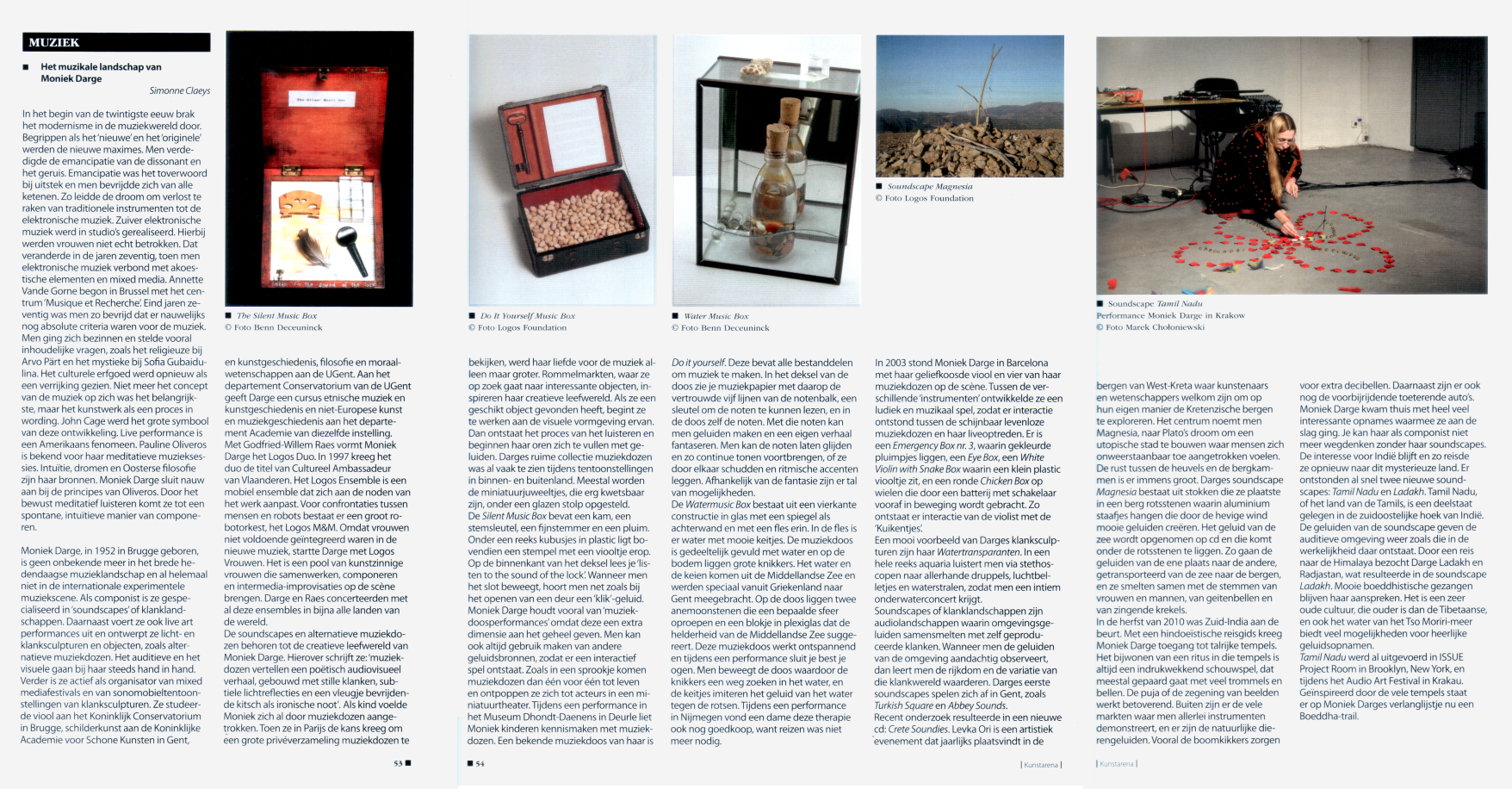 CATALOGUS KLANKENBOSMusica publiceert een eerste catalogus van Klankenbos. De gids brengt op een aantrekkelijke manier achtergrondinformatie over de klankinstallaties van kunstenaars als Baudeouin Ooosterlynck, Pierre Berthet, Hans Van Koolwijk, Paul Panhuysen, Erwin Stache, Horst Rickels, Moniek Darge en nog vele anderen. Bij de muziekdozen van Moniek Darge ontwikkelde Hendrik Leper een "Spel voor Schattentocht" (klik hier) Vanaf half september kunt u deze catalogus bestellen via de website van Musica of kopen tijdens rondleidingen in Klankenbos en aan het Musica-onthaal tijdens de kantooruren (kostprijs 5 EUR).