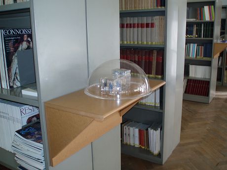 tentoon in de KUNSTBIB UGENT van 5 maart tot 30 april 2008alle werkdagen van 9-12 en 13-17 uur St. Hubertusstraat 2 9000 Gent www.kunstbib.ugent.be BENN (Veurne, 1960) toont beelden gefotografeerd in het lichtgevoelig studielandschap van Henry van de Velde's bibliotheek. Foto's van de lezende mens, architectuur en de werking van het licht worden getoond in een nieuwe constellatie. Een uitnodiging om te ontcijferen en te beleven. website Moniek Darge (Brugge, 1952) toont een staalkaart van haar uitgebreide verzameling zelfgebouwde muziekdozen. Haar muziekdozen vertellen een poëtisch audiovisueel verhaal, gebouwd met stille klanken, subtiele lichtreflecties en een vleugje bevrijdende kitsch als ironische noot ... |