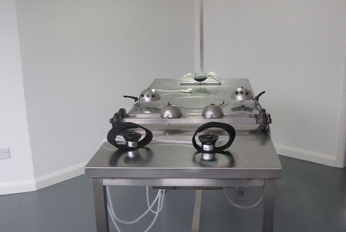 Oorwonde is an interactive operating table whereby the visitor turns himself over to aural surgery and hears and feels the soundtrack of a fictitious operation. Based on Bernhard Leitner's philosophy that listening is understood to extend to all parts of the body and sound to touch a deep nerve, Oorwonde explores the concept of bodily hearing and the borders of the audible.