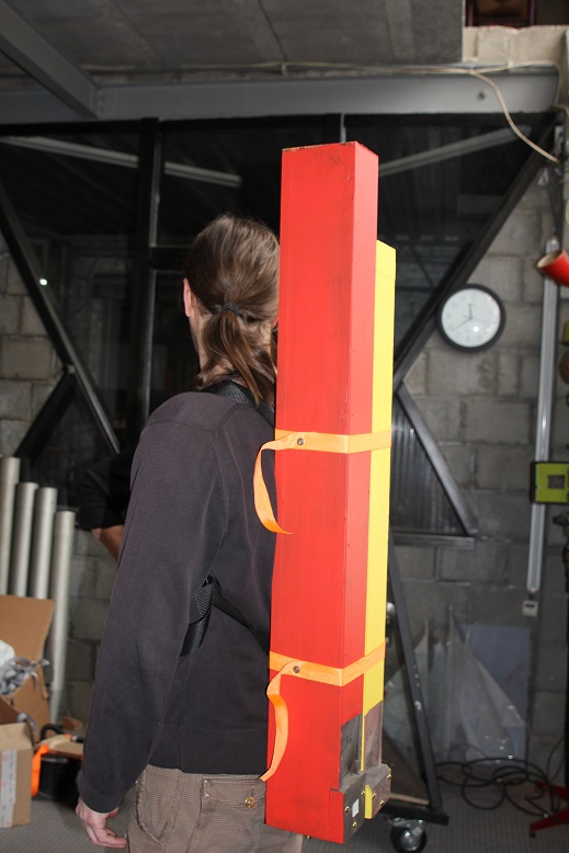 - Draagmechanisme: De pijpen zullen door de bespeler worden gedragen. Voor het mechanisme denken we aan een rugzak met of zonder frame, een draagzak die over de schouder past, een kleine trolly of karretje. Het draagmechanisme moet aanpasbaar zijn aan de gestalte van de bespeler.