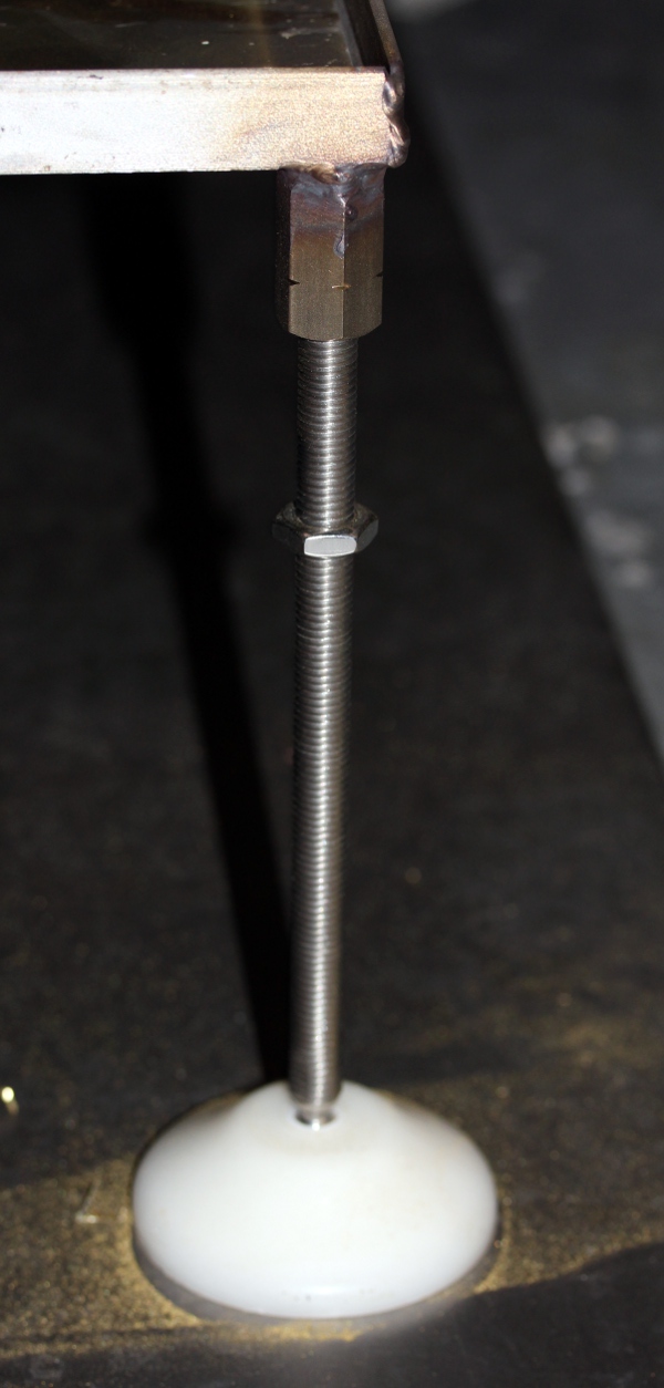 These feet should screw into long M12 nuts TIG welded on the corners of the frame.