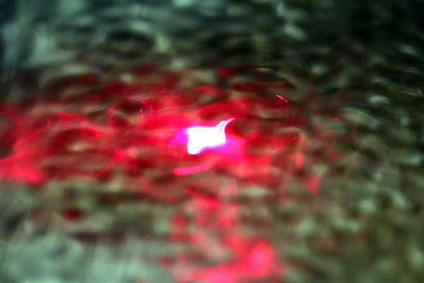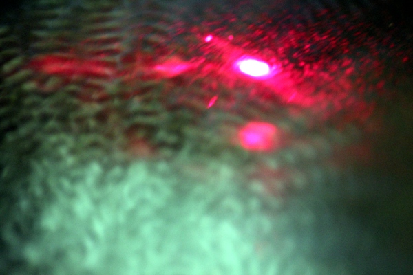Another possibility leading to quite fascinating results consists in used laser light sources pointed at the surface of the plate. The reflection of the light beam(s) should fall on a screen or a reflective wall. Here are some pictures taken from the vibrating water surface with a HeNe laser:
