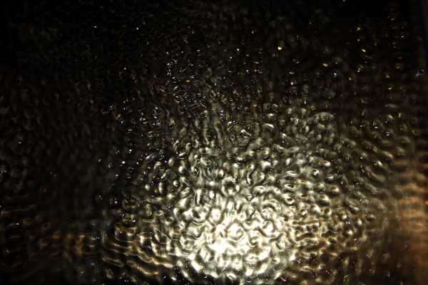 When the excitation level gets very high, tiny water drips start emerging from the surface. They can be seen as the white dots in this picture: