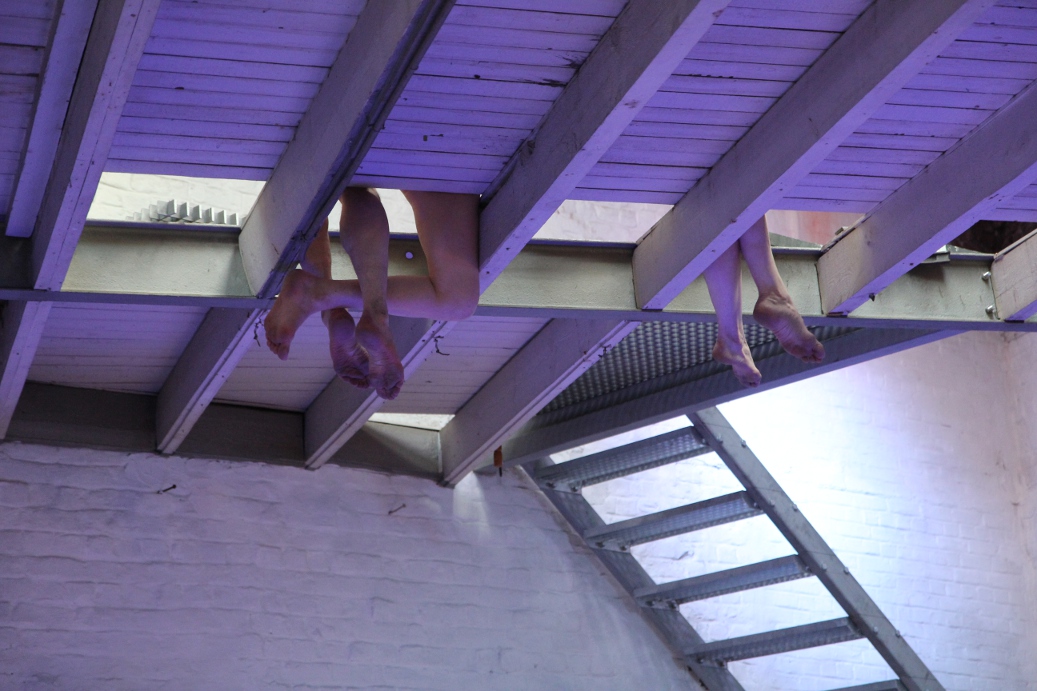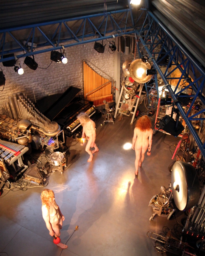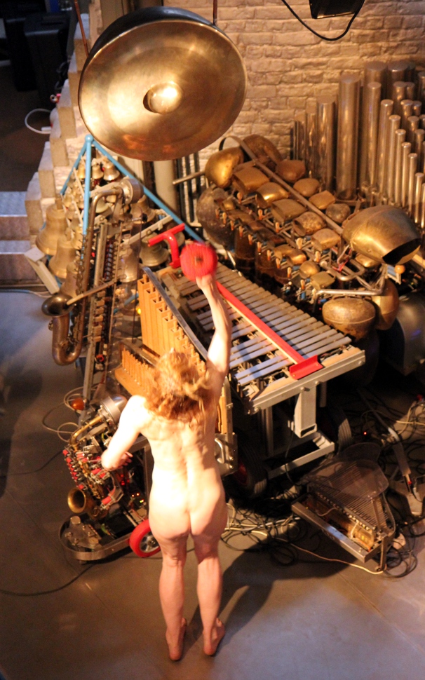 instrumentation: Bellenorgel, 3 airplane propellers, siren, rain