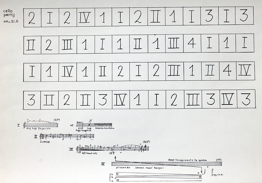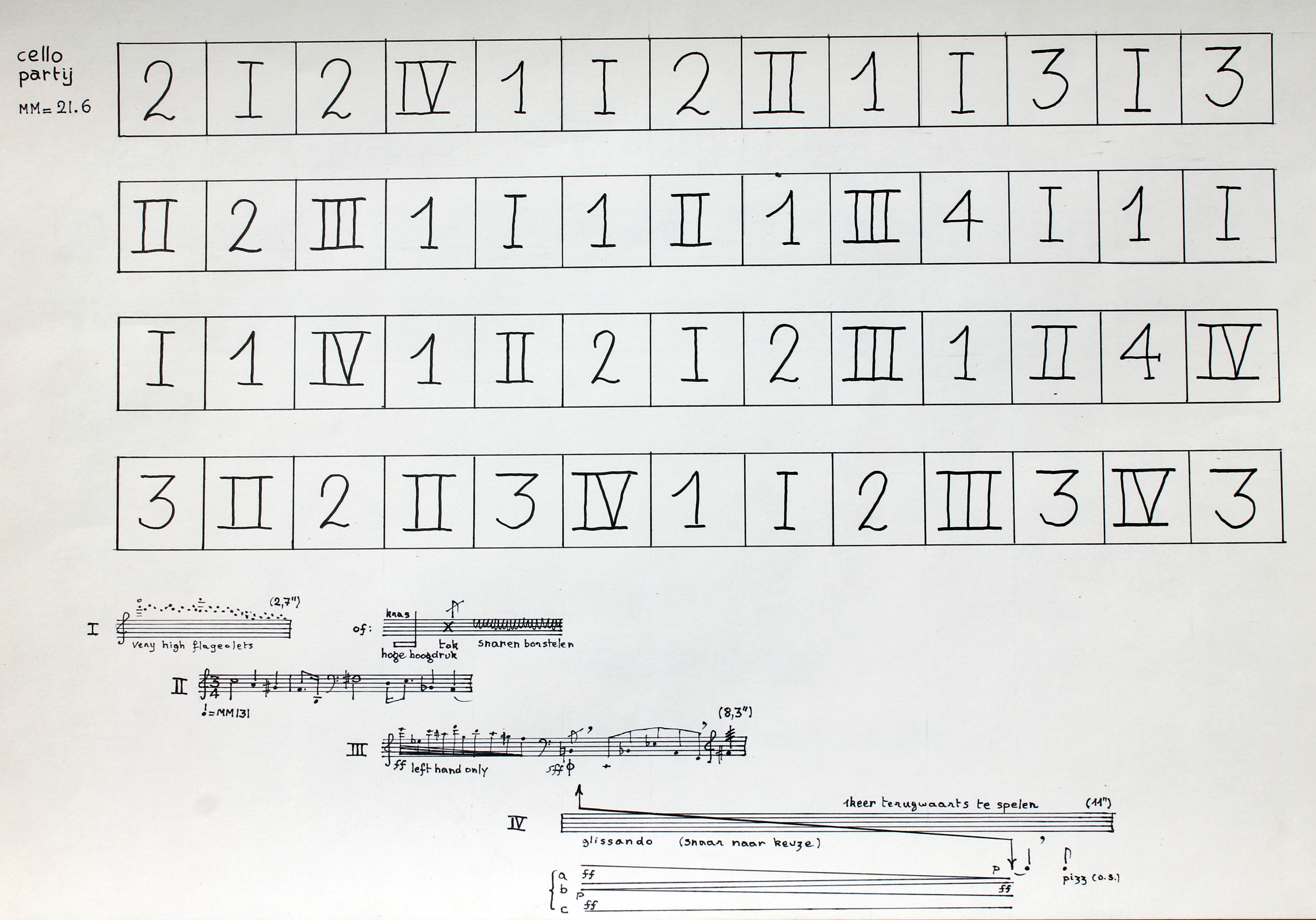 - Cello Partij (originele partij voorlopig zoek geraakt, wellicht uitgeleend voor een tentoonstelling..., maar werd gerekonstrueerd op 25.05.2012)