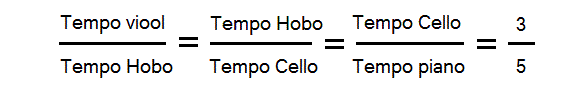 Wanneer nu een bazistempo gekozen wordt (hier 1 sek. voor het viooltempo in deel 1) dan laten de andere tempi zich gemakkelijk wiskundig daaruit afleiden:
