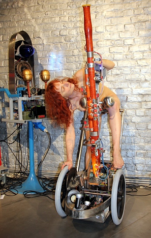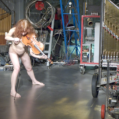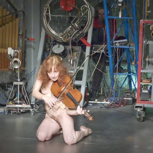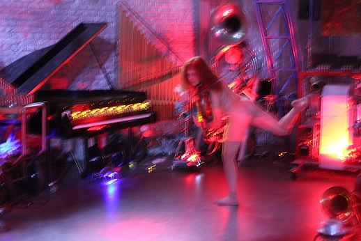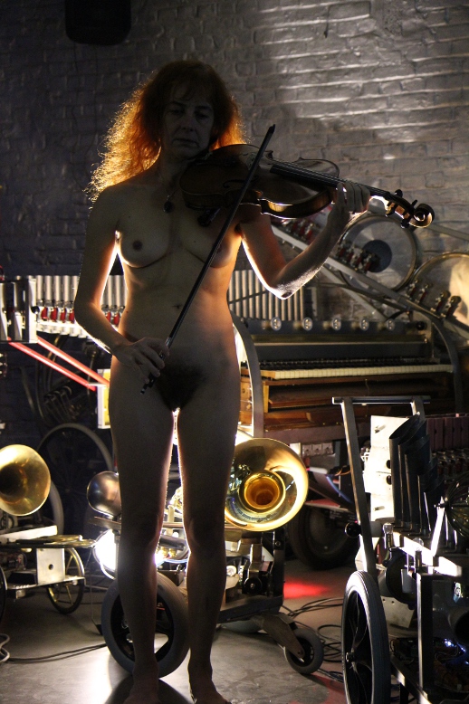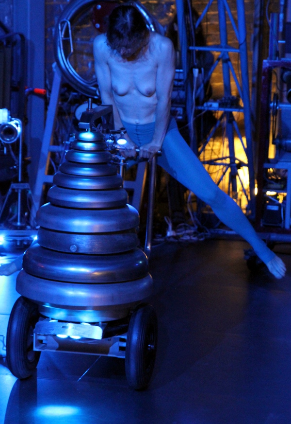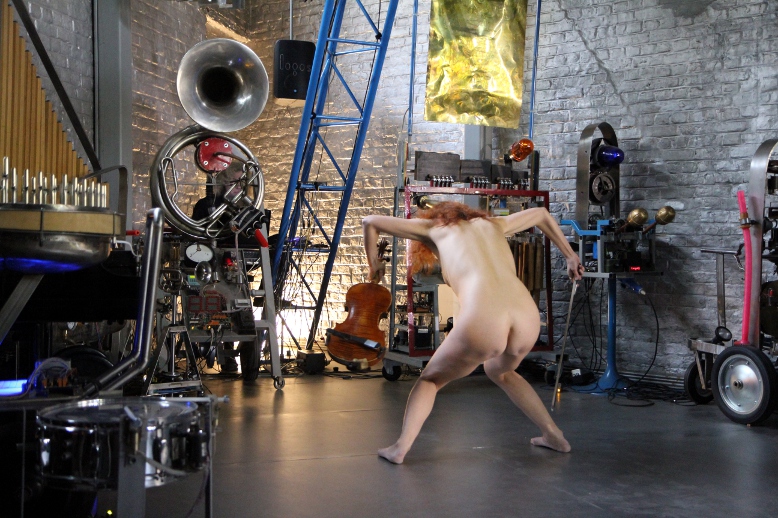 for one or more nude dancers, radar/sonar based invisible instrument and robot orchestra