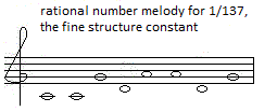 If you are curious, the melody given above for the fine structure constant, after conversion to the dozenal number system becomes this: