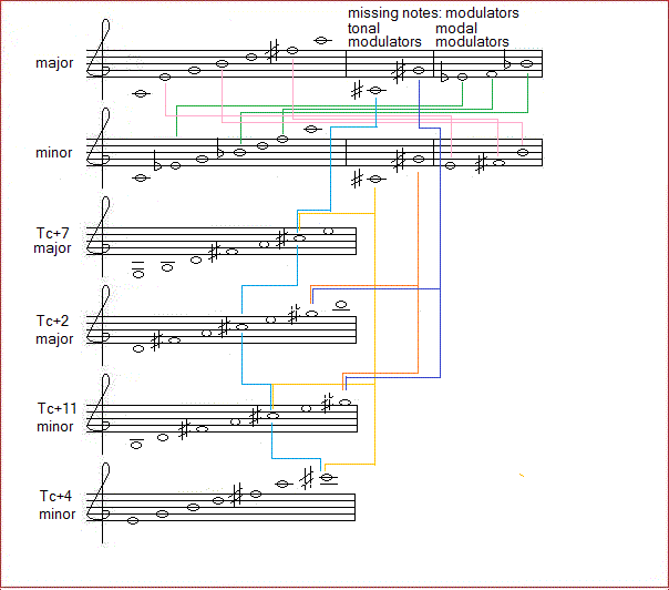 Playing around with these numerical patterns, we found out the decimal number system to be inadequate in these applications. The digits 0 to 9 just cover the notes 0 to 9 and thus we cannot use the notes 10 and 11. Hexadecimal was not a good solution, as it covers more than 12 notes. Hence we started considering the use of dozenal numbers. In these the base number 10 in the decimal system becomes 12. There is quite some beauty in this system, as its root is dividable both by 2 and 3. Furthermore, it's dividable by 4 and 6. So, we decided to dig into our math and write some procedures to handle the required conversions. They are now also part of our dll library g_indep.dll. They can be used by anyone and in any programming language. The declarations for all exported functions and procedures are in the file g_indep.bi.