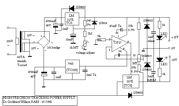 Of course, the entire circuit requires a decent balanced power supply. It can be build after following circuit design: