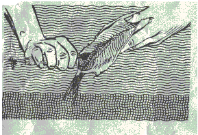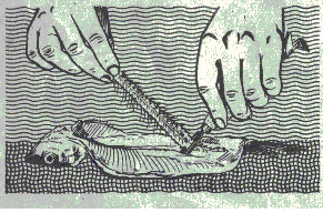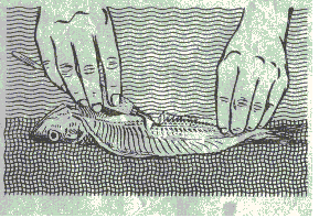- und schneide das Rueckgrat am Kopf und Schwanzende durch,