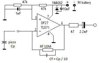 De voorversterkerschakeling, in de meest eenvoudige versie, ziet eruit alsvolgt: