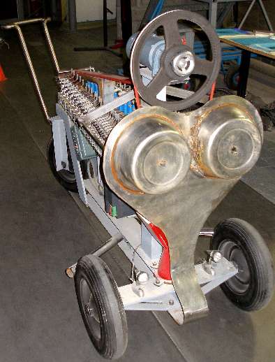 The piece demonstrates the nonexistence of just harmonics in physical, real world, strings. In most music theory books you will find stated that the overtone series of a string corresponds to a series f(n) = n . fo, whereby n runs in integers from 1 to above audibility for f(n). This theory belongs to religion rather than science, as is demonstrated clearly in this composition, where we force the strings to resonate on mathematically (or religiously...) correct overtones whereby we clearly hear that very often resonance is way off from what such theory predicts. The truth is that no 3-dimensional physical object in nature can vibrate in a mode conforming to integer-number spectral tones. Only 1-dimensional electronic oscillators (in hardware or in software) may do so. The electromagnetic driver we designed for the <Hurdy> robot has an extremely good precision and thus makes it possible to falsify the just harmonics theory, by comparing string behavior as a response to this form of excitation. In this piece we used the phenomenon of the variable response of the string to the excitation as a compositional principle, determining the dynamics of the piece in a most natural way. At the start of the piece the two strings sound D, an octave apart, using the tangent finger mechanism on the robot. The drive mechanisms of both strings wander through the overtone series, whereby the duration's are calculated in terms of the dissonance/consonance properties of the diads sounding. After a while, the bow wheel starts slowly turning and the bow mechanism comes into action, causing some contrasting crude and harsh sounds. A simple transposition/modulation follows and the piece ends on both strings sounding A, but now with a spread of two octaves. The composition is entirely embedded in software written within the framework of my <GMT> programming language. In a second piece -actually identically the same code is used to generate it- we use physical reality to determine what the overtone series should be. As a starting point we used the following approximate formula for the calculation of the spectral components and overtones is a real string: